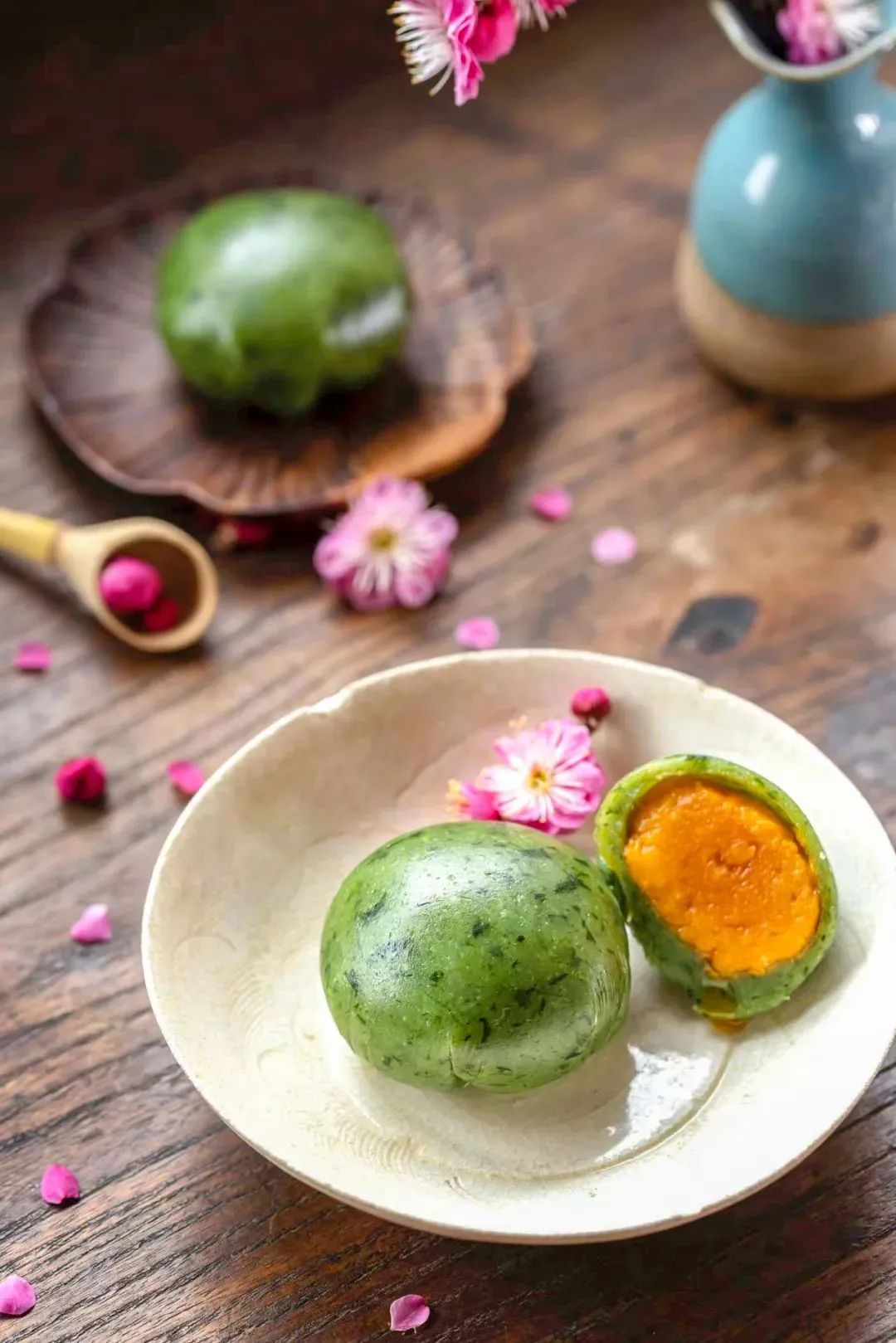 “春季限量”的主要产品是长三角传统时令团,包括红豆沙、黑芝麻、蛋黄肉松三种经典口味。食材用新鲜的艾草汁揉面,皮软糯芳香,馅料制作工艺注重。
