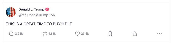 美国总统唐纳德·特朗普写道:“这是买进的好时机!
