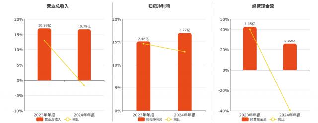 企业总营业收入为 10.79 与去年同期报告期营业总收入相比,亿元减少 1960.36 与去年同期相比,万元有所下降。 1.78%的归母净利润 2.77 十亿元。经营活动现金净流入 2.02 与去年同期报告期经营活动净流入相比,亿元 1.33 与去年同期相比,亿元有所下降。 39.66%。