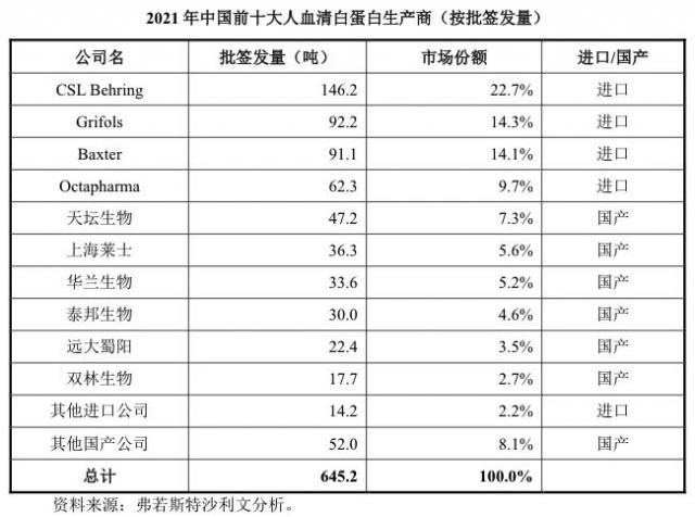 当前,全球血液供应总额 70% 全部来自美国,而国内接近美国。 40% 血清白蛋白也是从美国进口的。