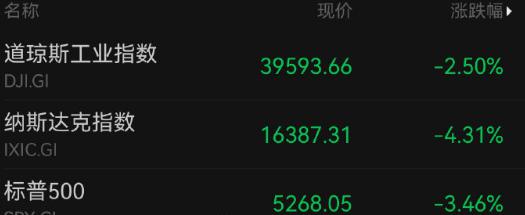 在美股方面,三大指数均遭受重创。纳斯达克指数下跌幅度最大,收跌幅度最大。 4.31%;标普 500 指数紧随其后,下跌 3.46%;道琼斯指数也在下跌 2.5%。大科技股成为此次下跌的重灾区,特斯拉跌幅超过 7%,Meta 跌超 英伟达、亚马逊跌幅超过6% 苹果跌超5% 谷歌跌幅超过4% 微软跌超3% 2%。作为美股的重要组成部分,科技股集体下跌给整个市场带来了巨大的压力,反映了市场对科技产业未来发展的焦虑。