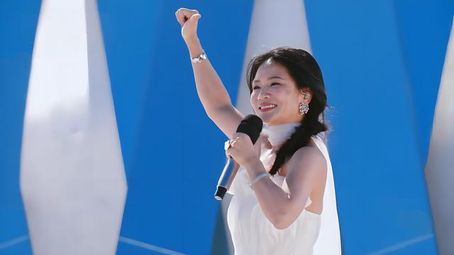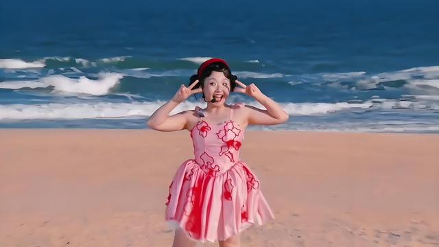 在最初的舞台上,她独自抱着吉他在海边唱歌,让人感到温柔宁静。