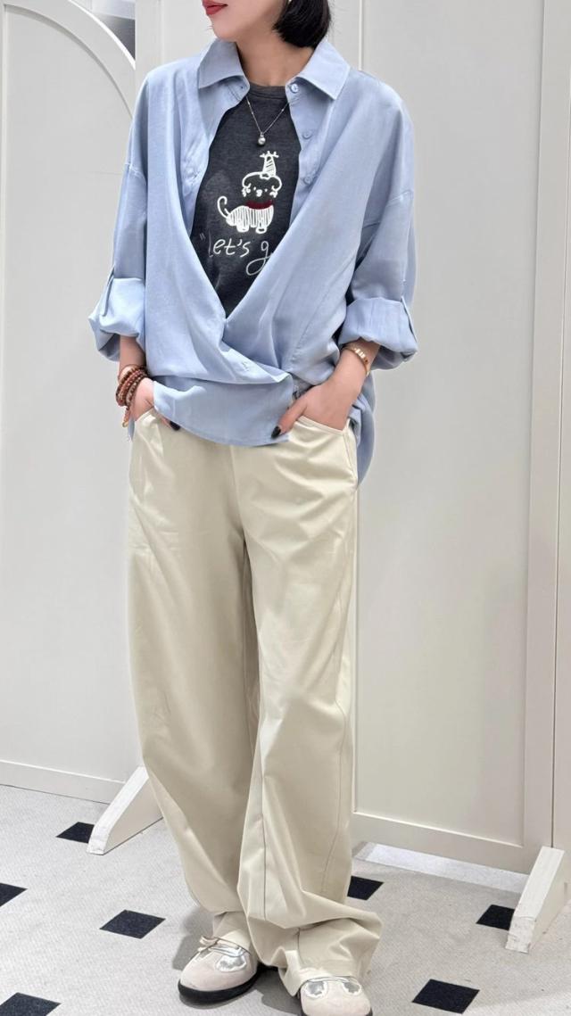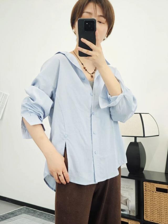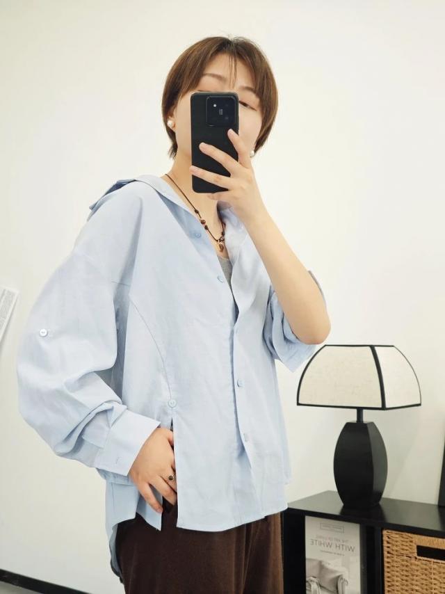 这件衬衣稍微松了一点 H 款式,宽松有度的衣摆,小肚腩,拜拜肉瞬间隐形,的确很会藏肉。