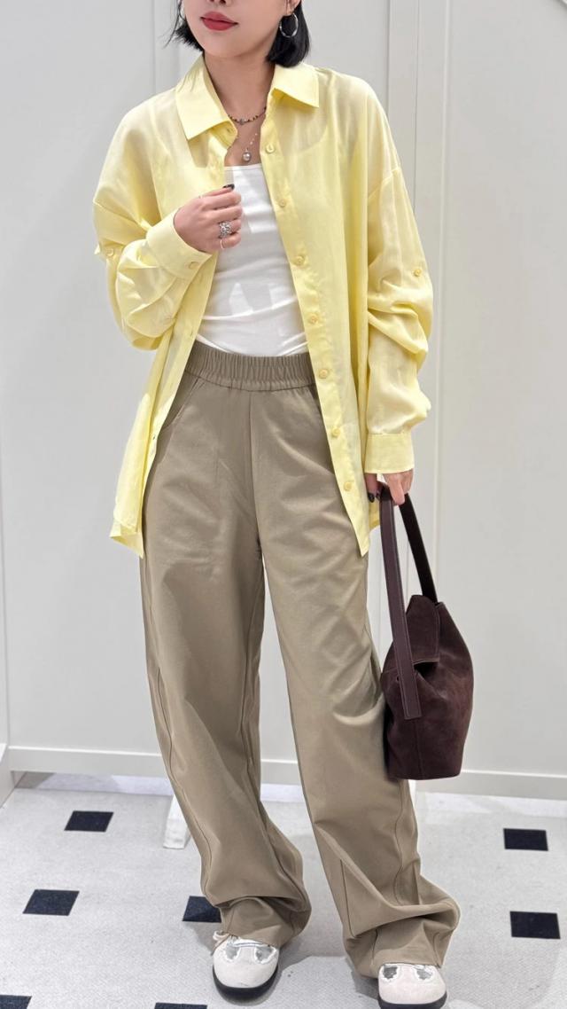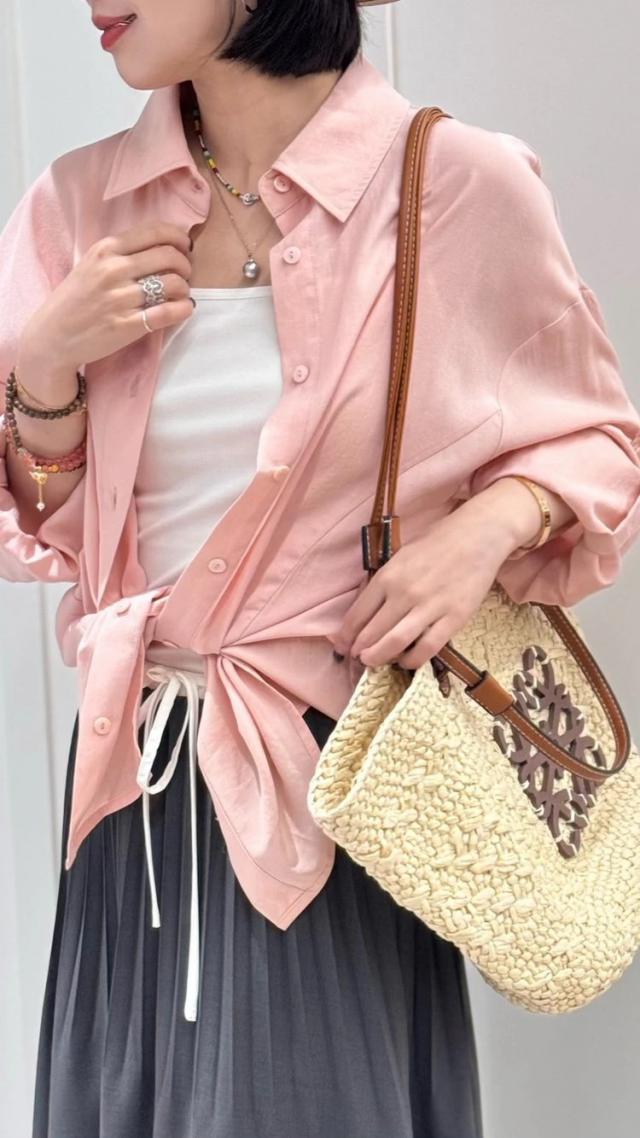 自带垂感的面料,走路时非常优雅,将下摆系在腰部,又是一种感觉,更加慵懒随意。