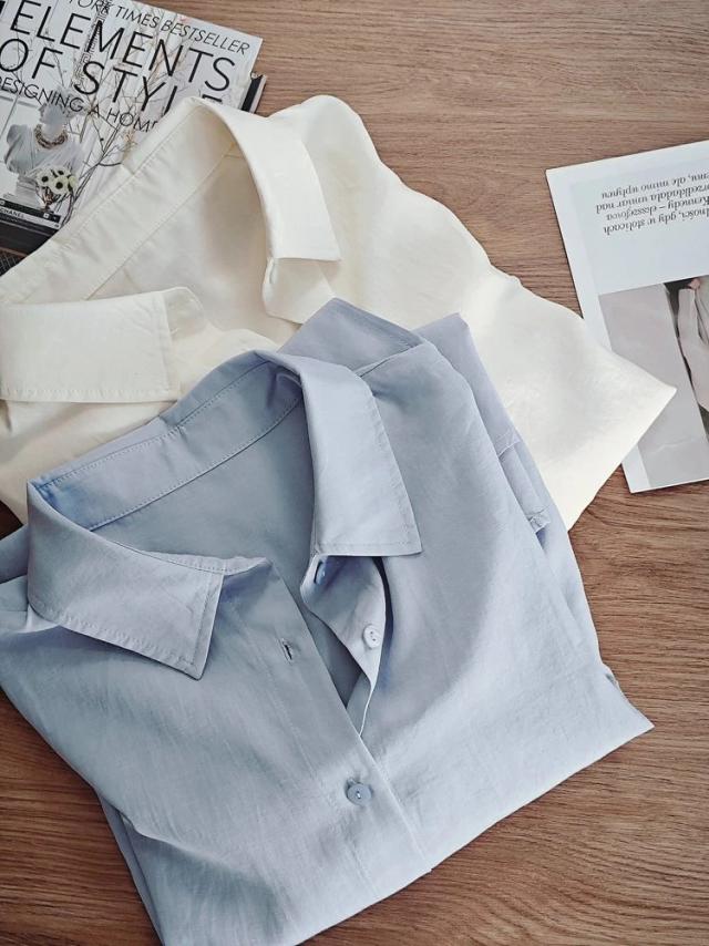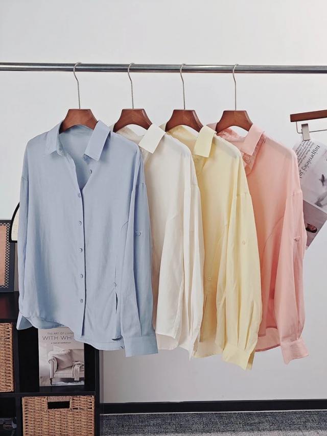 今日这件衬衫,共 4 颜色:蓝色,粉色,黄色,白色。改变千变万化的风格,百搭美观。
