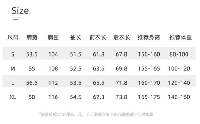 尺码是 M、L,可以从 80 斤穿到 140 斤。