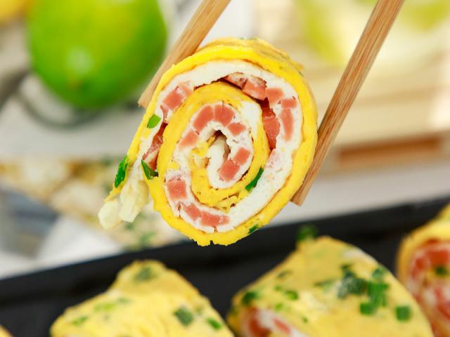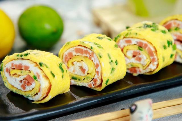 豆果美食大咖今天 @老板娘微食记 教大家做日式鸡蛋卷,食材很简单,只需要鸡蛋、火腿、葱花,但是味道很独特,柔软嫩滑,咸鲜鸡蛋充满香味,番茄酱的组合也很独特。经常做饭的朋友可能会看到这其实是一种常见的鸡蛋饼做法。如果时间太晚,也可以直接卷起来吃。