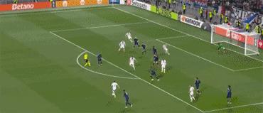 中前场无法抓住机会,「嘴炮」奥纳纳借此机会成为主角。里昂主罚前场左边的任意球,蒂亚戈 · 阿尔梅达似乎在传球,曼联门将似乎没有预料到门口没有人会碰到足球。他的扑救反应太慢。足球弹地后,他直接上网,里昂。 1-0 领先曼联。