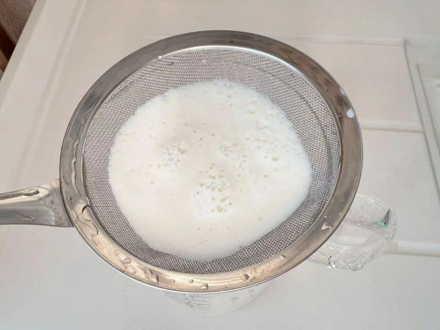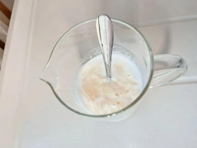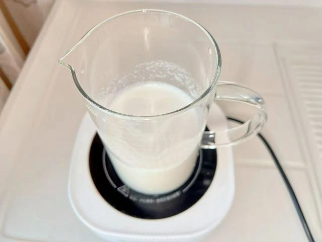 4. 将雪梨牛奶加热到小火 45 ℃。