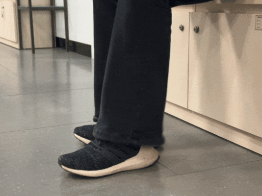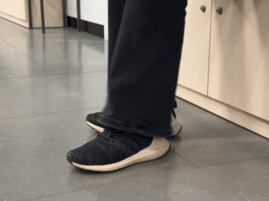 坐在有直背和把手的椅子上,把脚后跟放在地上,然后尽量以最大的速度和最快的速度,用脚趾拍地10次。
