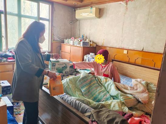 淞新居民区有一位独居老人,家中囤积了大量废弃的饮料瓶、饭盒、牛奶盒等杂物。异味严重,不仅严重影响了老年人的生活环境,也给邻居带来了麻烦。尽管社区工作人员多次上门劝说,并提出可以帮助老人整理,但一次又一次被老人顽固地拒绝。然而,由于老人的抵触和刺鼻的气味,李叶惇从未放弃。她一直坚持定期上门探望,认真询问老人的身体状况,耐心倾听她的生活琐事,从外面给老人送去关怀。