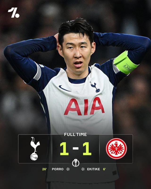 热刺主场 1-1 战平法兰克福。埃基蒂克首开纪录,波罗扳平比分。贝里瓦尔和本坦库尔在下半场相继投篮。[详细信息]