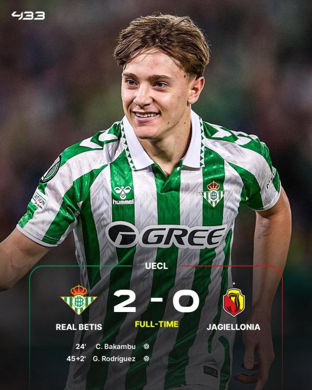 皇家贝蒂斯主场 2-0 击败乔治罗尼亚,各种比赛。 9 场上不败。安东尼多次冒险,巴坎布单刀破门,赫苏斯 - 罗德里格斯破门而入 中柱。[详细信息]