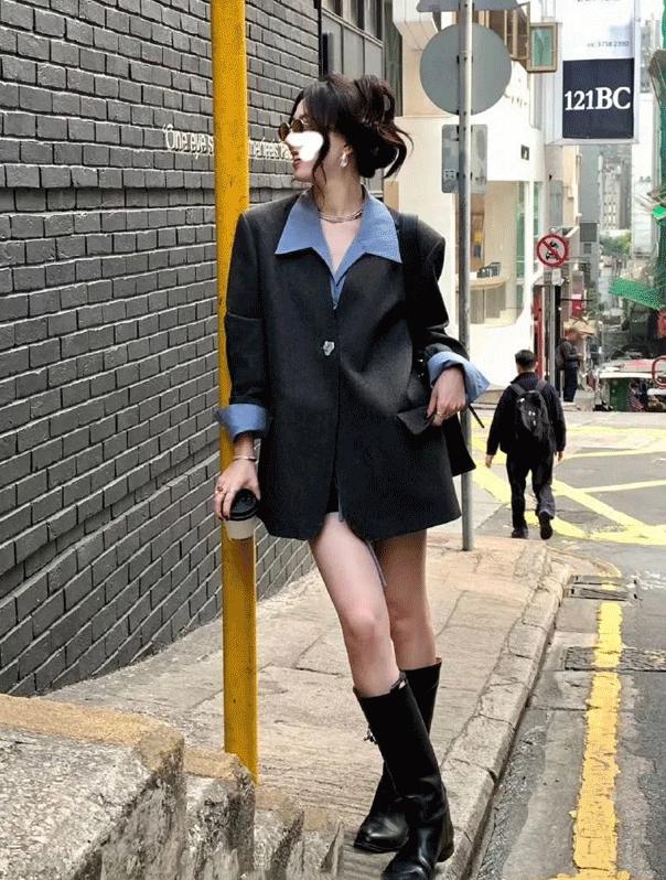 袖子的内侧采用了褶皱设计,削弱了手臂的厚重感,更显瘦。 / 慵懒~