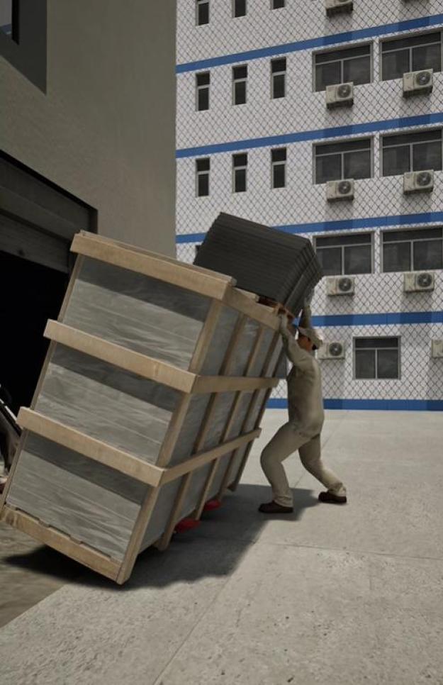 工作人员缺乏安全意识,用手扶倾倒的货物,被货物砸高压,直到路面受伤。