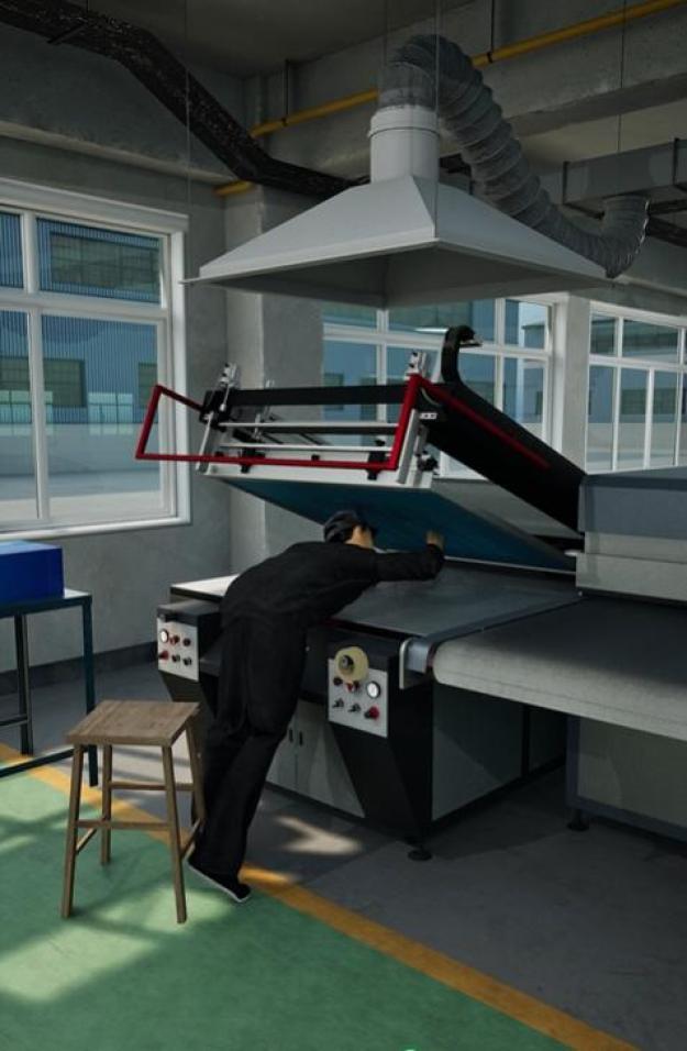丝网印刷工人在未按下急停按钮或关闭电源的情况下,非法进入网架与承片台之间清理油污,网架自动按压,造成事故。