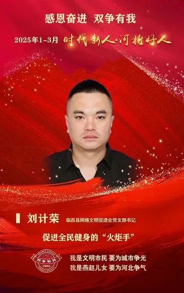 一九八三年十二月出生的刘计荣,中共党员,临西县网络文明促进会党支书。近年来,他带头慈善捐赠,安排了数百场志愿服务活动;多次组织全民健身比赛“六进”,激发全县群众健身热情;在担任新媒体协会会长期期间,他带领全县30多家自媒体走上了标准化发展的“快车道”。他在临西县成立了网络文明促进会,建立了“民生事务” 及时开展“网络文明公益活动,帮助群众解决困难,赢得广泛好评。曾获“感动邢台网络人物”、“邢台好人”、“邢台市文明市民”等荣誉称号。