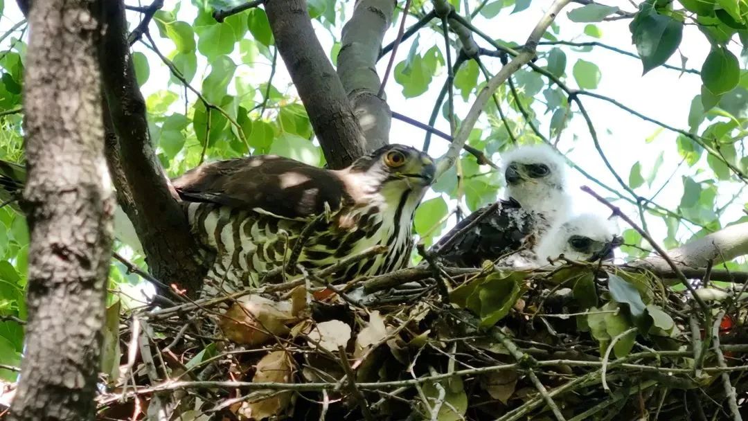 随着城市生态的不断改善,上海上空出现了许多类型的猛禽,但这些猛禽大多属于候鸟或旅鸟。其中,凤头鹰是上海为数不多的常年生活繁殖的猛禽之一。2023年,中山公园发现了凤头鹰一家。凤头鹰作为捕食性鸟类,以捕食其他小动物为食。在野外,它们的“食谱”包括珠颈斑鸠、乌龟等小型哺乳动物,如赤腹松鼠、棕色家鼠等。,以及青蛙、壁虎等两栖爬行动物,甚至一些更大的昆虫也可能是它们的捕食目标。