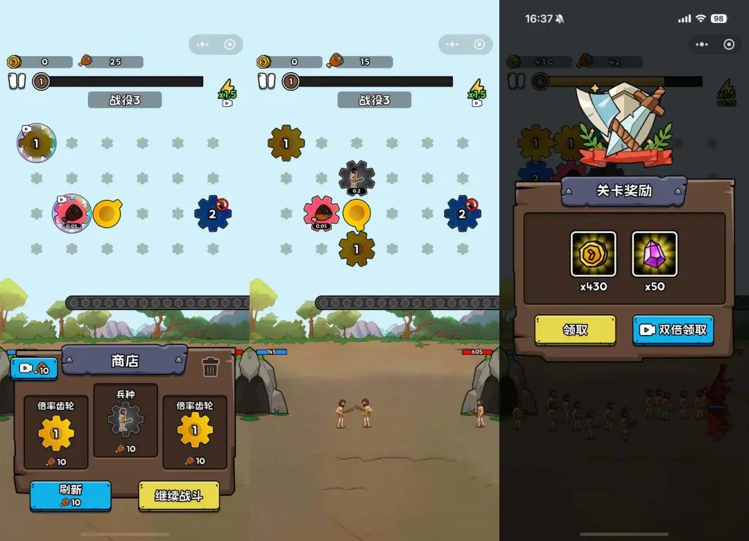 但是现在齿轮玩法前期的游戏节奏比较慢,如何平衡策略和游戏难度,也是想要尝试这种玩法的厂商需要考虑的问题。此外,目前《人类无限进化》的新版本是实现广告,主要用于复制双奖、免费高档齿轮、获取道具等功能。如果有厂商想要IAP,也可能是一个方向。