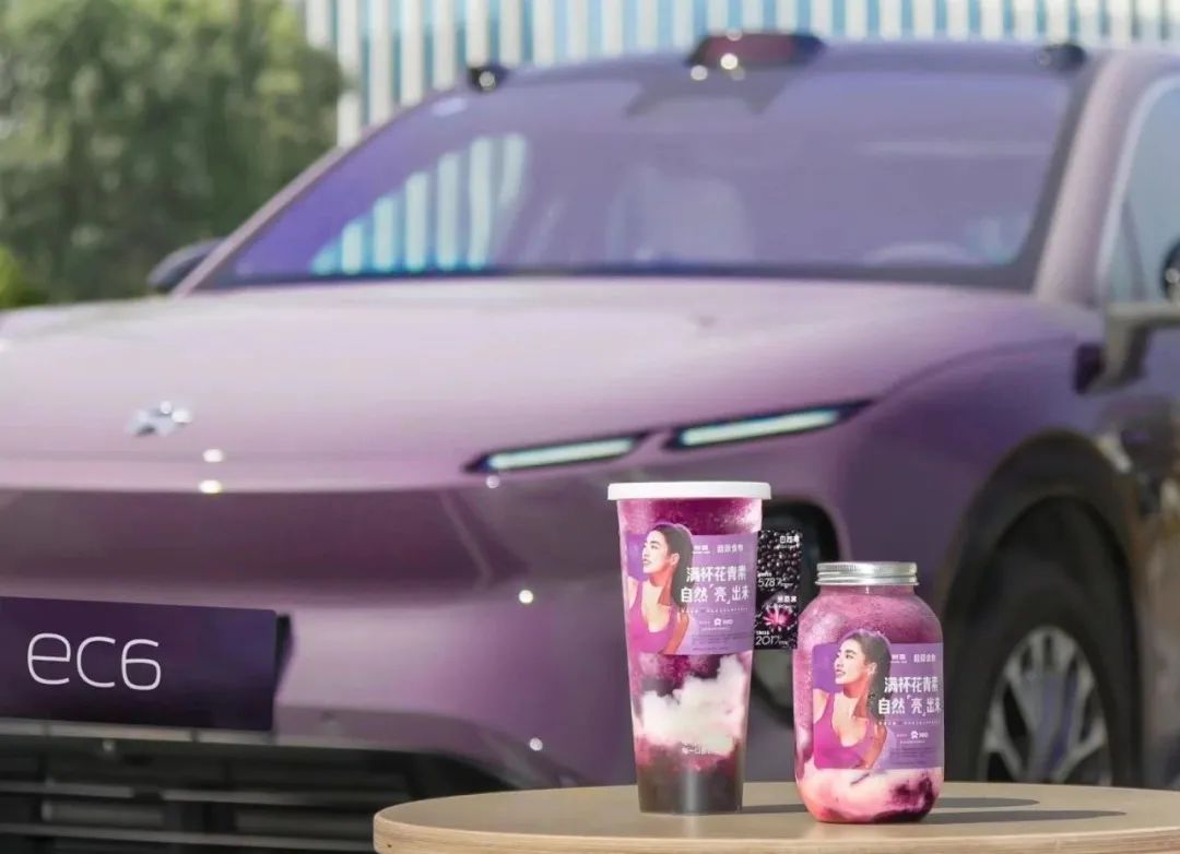三月底,树夏联动汽车品牌蔚来推出限制饮料——巴西莓桑葚酸奶,中杯价格为22元,采用黑桑葚、巴西莓、菠萝等多种元素与酸奶相结合。