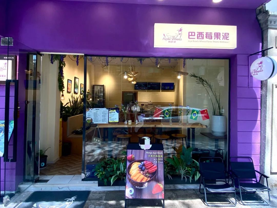 “早安巴西莓”是店里最畅销的产品,是一整杯浓厚优秀的巴西莓泥,深受当地美丽白领和健身人士的青睐。今年2月,第二家店也顺利落地。