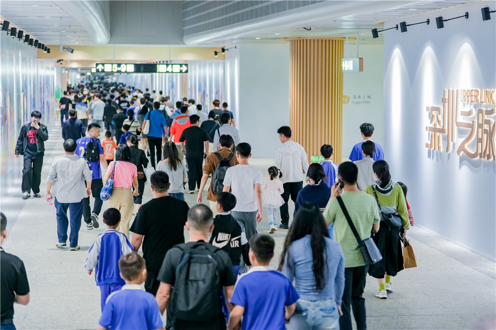 重塑客户群体结构:深圳之脉还紧邻深圳市第二人民医院、深圳市体育中心等关键市政设施和深圳市顶流学区“百花区”,属于城市刚需公共服务的超级流量插件。特别是深圳市体育中心是深圳市第一个国际A类比赛专业足球场。黄木岗地铁枢纽流量(日均5人以上)叠加,准确覆盖家庭客户和体育消费者,为其商业差异化竞争奠定基石。