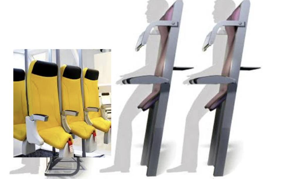 一排排学名为“轻薄型”、新型航空座椅,俗称“刀头”,取代了以前的厚椅背。