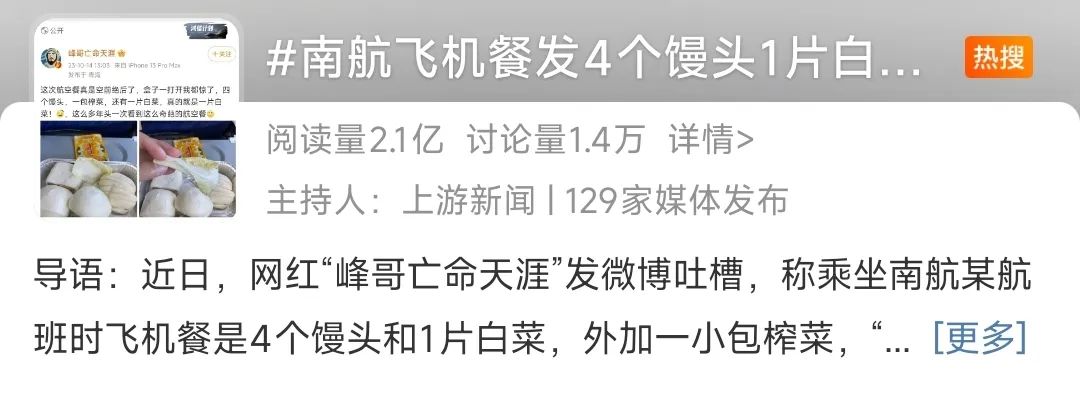 只是对于一些平时不太关注航空公司差异的普通乘客来说,在天上吃什么更像是打开一个盲盒,是白面馒头还是红糖馒头。