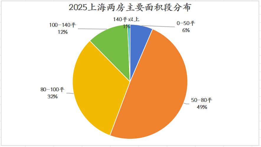 两室不同面积,占整个供应端的比例,很不一样。基本上,50-100㎡两室商品,覆盖上海二手市场近八成。