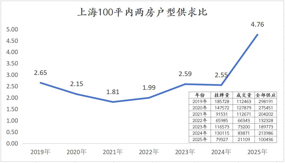 拖出供需关系,今年上海两室成交,似乎也来到了分界点。上海100㎡内两室与小三室的供需比例,前几年上海的两室不太愁卖。