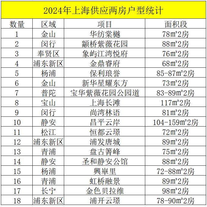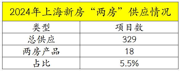 在2024年的上海新房供应中,我统计了329个项目中,只有18个项目包括两居室公寓,只占5.5%左右。