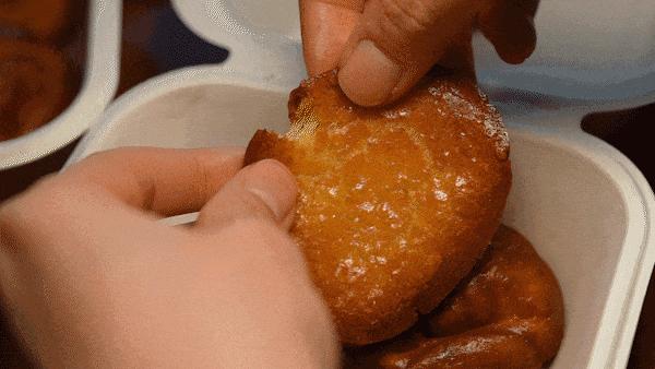 打开一个简单的透明塑料盒,用手抓起一个刚出炉的黄油芝士年糕,直接在风中咀嚼。在咬脆壳和奶酪爆浆的那一刻,黄油年糕的意义已经超出了食物范围,升华为承载工人自由意志的图腾。