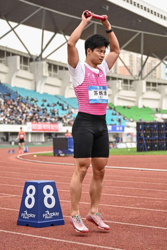 第二天的男人 100 在米半决赛中,苏炳添因身体原因缺席,让现场数千名田径迷大失所望,但是 13 日本迎来了“苏神”出现在接力决赛的重大消息,肇庆市民创造了自开赛以来最热门的氛围,迎接了“亚洲飞人”接力赛之王的回归。与过去“弯道超越”的第三棒不同,苏炳添自愿接过第一棒。“炳哥想为广东队做贡献,于是主动向教练组申请第一棒。“严海滨赛后解释了苏炳添为什么要跑一棒。