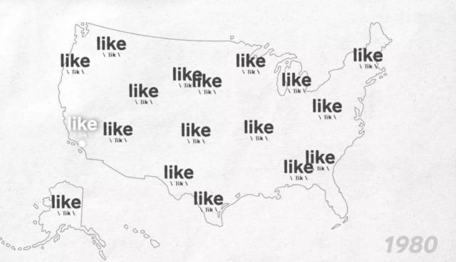 再加上电视、通信技术的发展,从此,like" 随着这些新兴中产阶级的崛起,这个词席卷了美国各州甚至每一个性别,几十年来对美国人的日常口语产生了深远的影响。