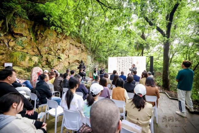 现场,书法家们用5米。×10米长卷,继写“世界第一帖”的千年骄傲。在茶叶丝竹的优雅魅力中,再现了文人雅集在《文会图》中的壮丽景色。苏轼书中“夕阳在山中”的复刻石雕在悬崖之间熠熠生辉,现已成为小昆山镇新的文化打卡点。