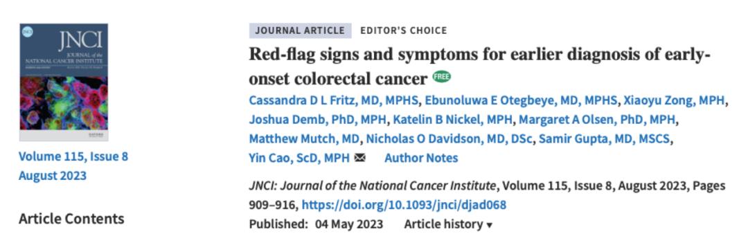 ①Red-flag signs and symptoms for earlier diagnosis of early-onset colorectal cancer. J Natl Cancer Inst. 2023 Aug 8;115(8):909-916. doi: 10.1093/jnci/djad068.