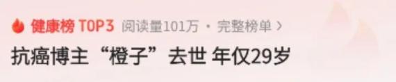 原题:“29岁抗癌博主肠癌去世!建议大家不要熬夜,少喝酒,少吃外卖”
