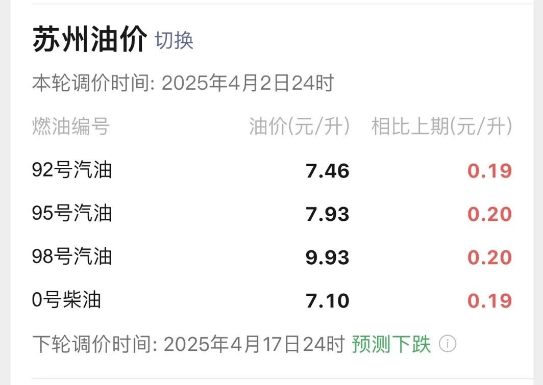 四月十七日,油价将迎来新一轮调整,预计每升下跌0.4-0.42元。