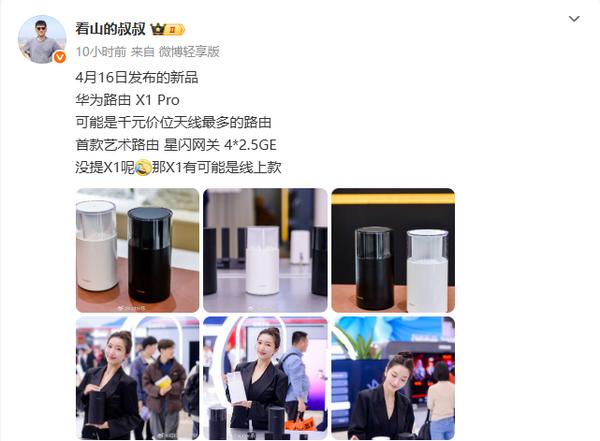 【CNMO 近日,一位数码博主透露,华为计划在计划时进行。 2025 年 4 月 16 一款名为华为路由日正式推出。 X1 Pro 新路由器。该产品以其独特的设计和强大的功能,有望成为1000元价位段天线数量最多的路由器,并被宣传为第一个艺术路由器。