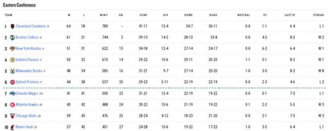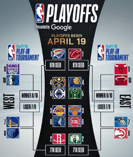 前两名骑士和凯尔特人在东部,他们的第一轮对手也需要额外的比赛决定。尼克斯东部第三场对阵黑马球队活塞,步行者锁定第四轮对阵雄鹿,双方进行恩怨对战。