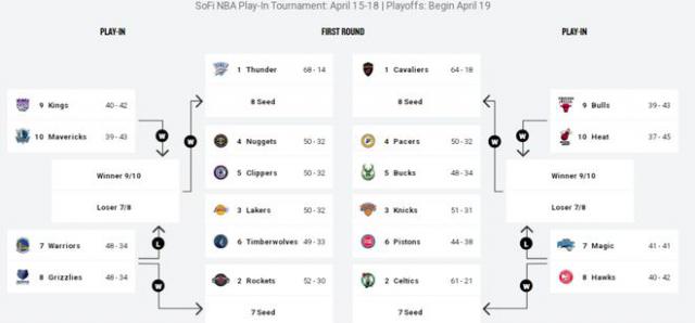 第一轮附加赛魔术主场迎战老鹰,公牛主场迎战热火值得期待。