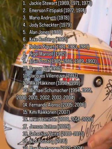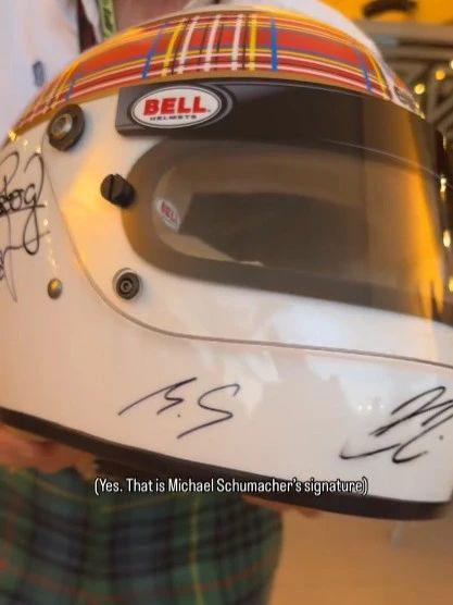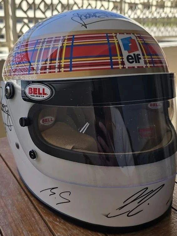 据报道,这次杰基 · 在斯图尔特爵士的头盔上,迈克尔 · 舒马赫的签名,但这个签名是“车王”舒马赫在妻子的帮助下完成的个人姓名首字母” MS "签名,可谓意义重大。除了舒马赫的签名,这个头盔上还有斯图尔特本人和埃摩森。 · 费迪帕尔蒂、安德雷帝、皮奎特、普罗斯特、维伦纽夫、哈基宁、阿隆索、汉密尔顿、瓦特尔和维斯塔潘等。 20 位 F1 年度冠军车手签名。
