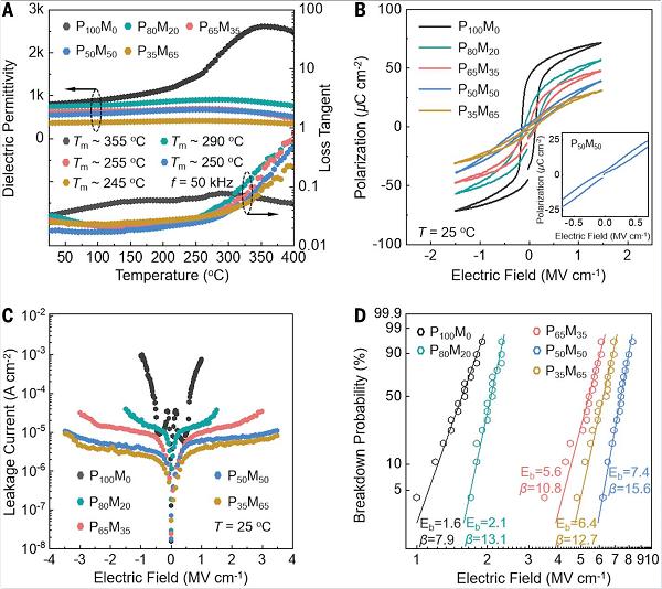 图3、介电常数、铁电性、漏电强度及PM薄膜击穿强度 © 2025 AAAS