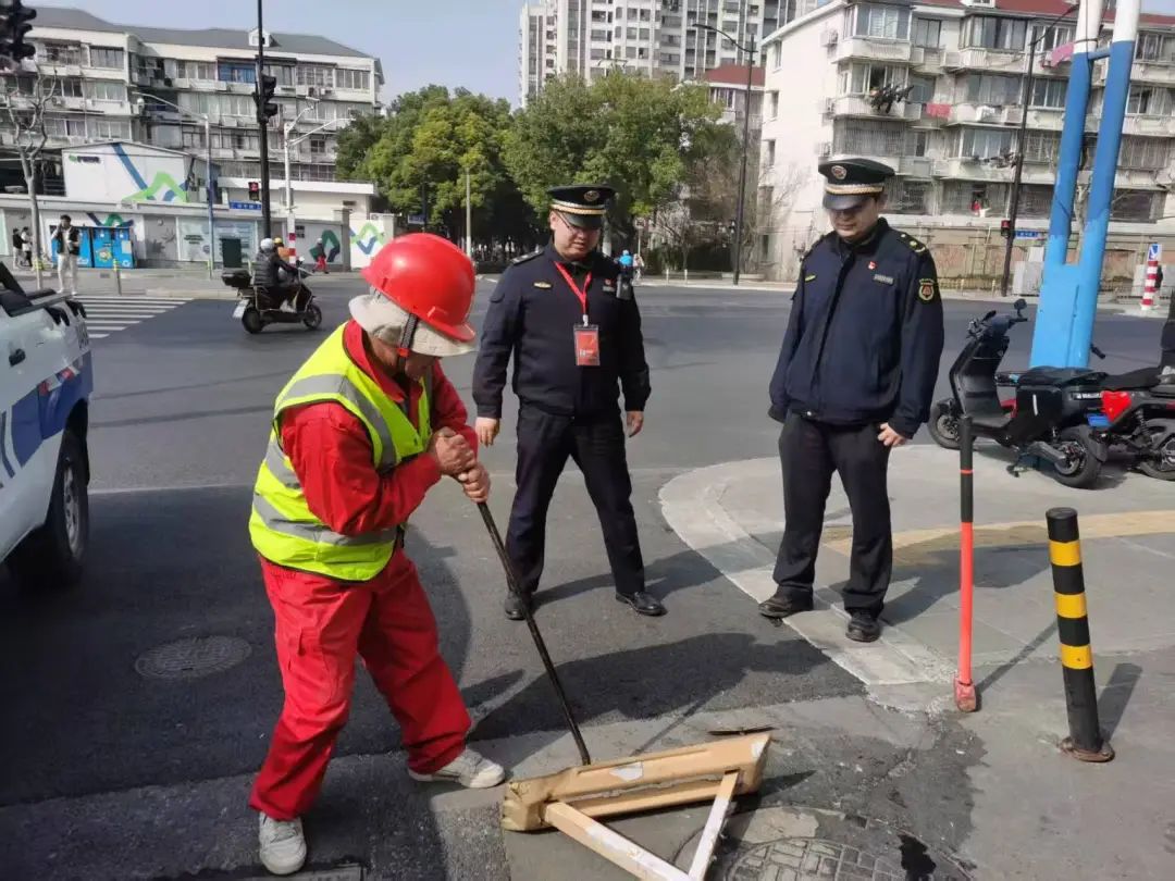 在彭浦镇幸福综合网格的带领下,相关部门各尽其责,开始密集推进改造方案。城管在现场协调管理,网格工作人员与商家代表进行入户协商,专业施工队伍对损坏的路面进行修复。