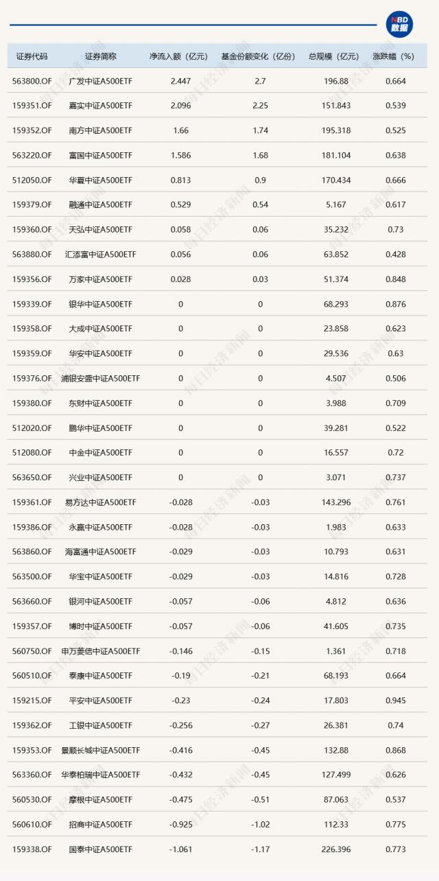 另外,当天的场内 32 只中证 A500ETF 合计净流入 4.91 亿元。