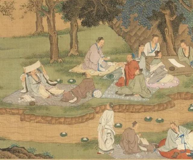 在参加会议的人中,王羲之年龄最大,时年 51 岁月,坐在曲水最下游,郡功曹魏霏陪着他坐下,这次参加会议最小的为王羲之的儿子王献之,年仅一年, 10 年纪大了,真的是“少长咸集”。不用说,王羲之的太原王氏来人,文坛领袖孙绰,兄弟孙统也来了。陈郡谢氏、邬川庾氏等各大门阀氏族都派了代表,都是名人。