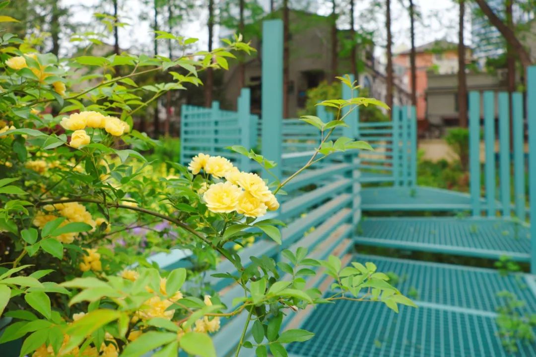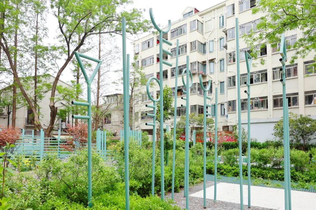 居民可以在“花园剧院”的休闲座位上休息聊天,也可以在“野鸟地图”艺术装置前停留,了解这些“飞羽邻居”的故事。当你登上观鸟台时,你可以看到整个草地花坛,偶尔你可以捕捉到鸟儿穿过树梢的聪明身影。