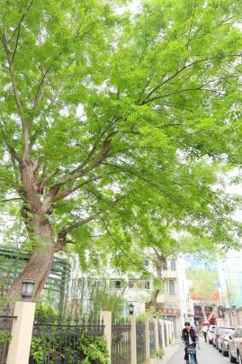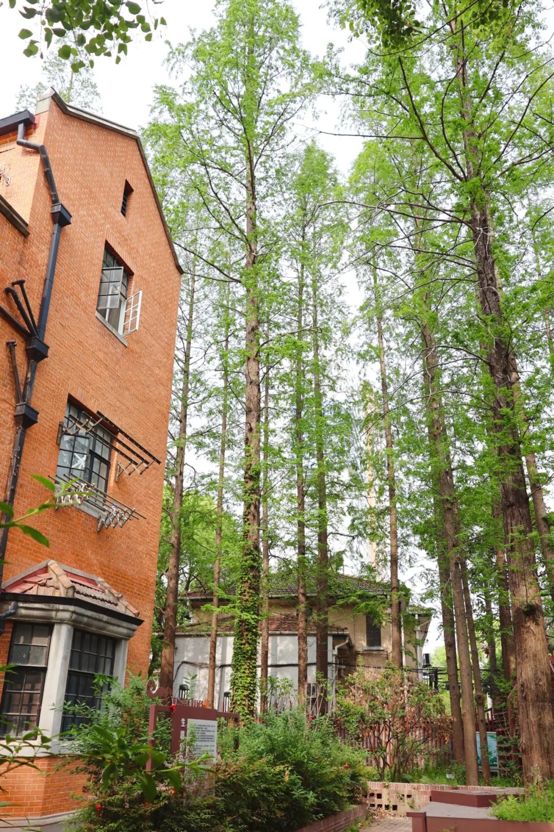 当你走近岐山生境花园时,绿色迎面而来。阳光下,大片新叶围着花瓣爬上墙,仿佛在向过去的行人致以春天的问候。走进公园,挺拔的水杉林与红砖墙相得益彰,勾勒出美丽的城市天际线。