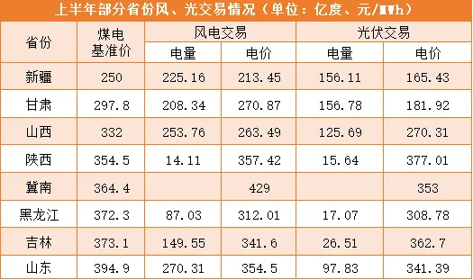 2024年上半年,新疆风力发电平均清算价格为0.21元/度,光伏平均清算价格为0.16元/度,光伏电价格低于风力发电价格的23%。;甘肃省风力发电平均清算价格0.27元/度,光伏平均清算价格0.18元/度,光伏电价格比风力发电低30%。