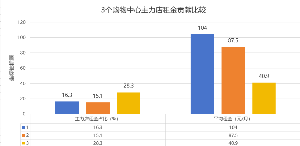 按照同样的方法,我们将主力店的租金奉献与平均值进行比较,总结如下: